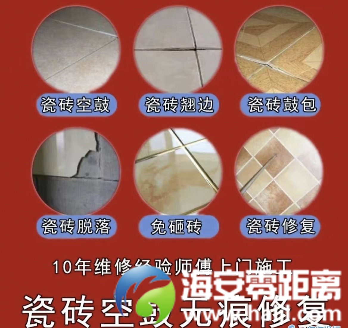 免砸砖修复瓷砖空鼓,翘边,变形,松动,解决各类瓷砖问题!17882178208