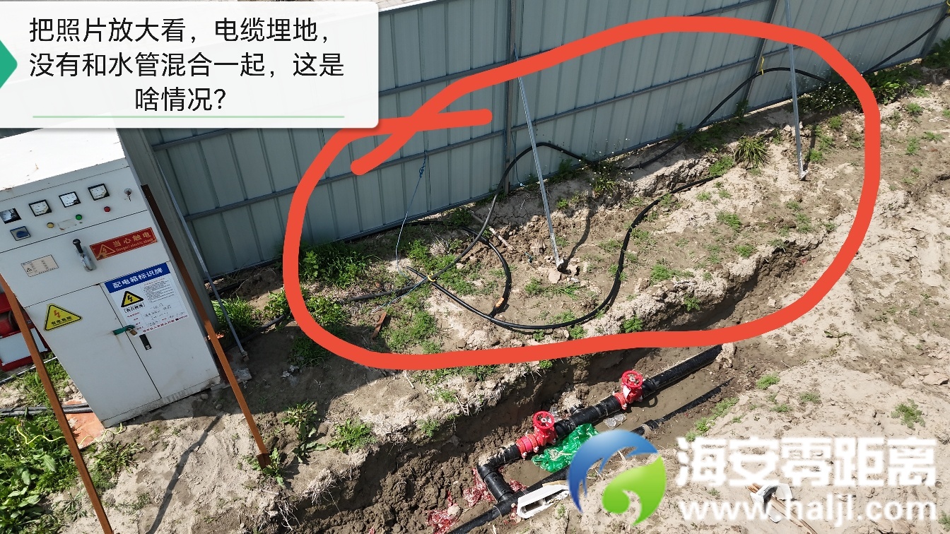 问题二、经现场核实总配电箱有设置专门的配电房,电缆已埋地,现场未见与水管混合在一起放在地面的情况。电缆埋地?未见水管和电缆混合的情况?那大家来看看我今天拍的照片!